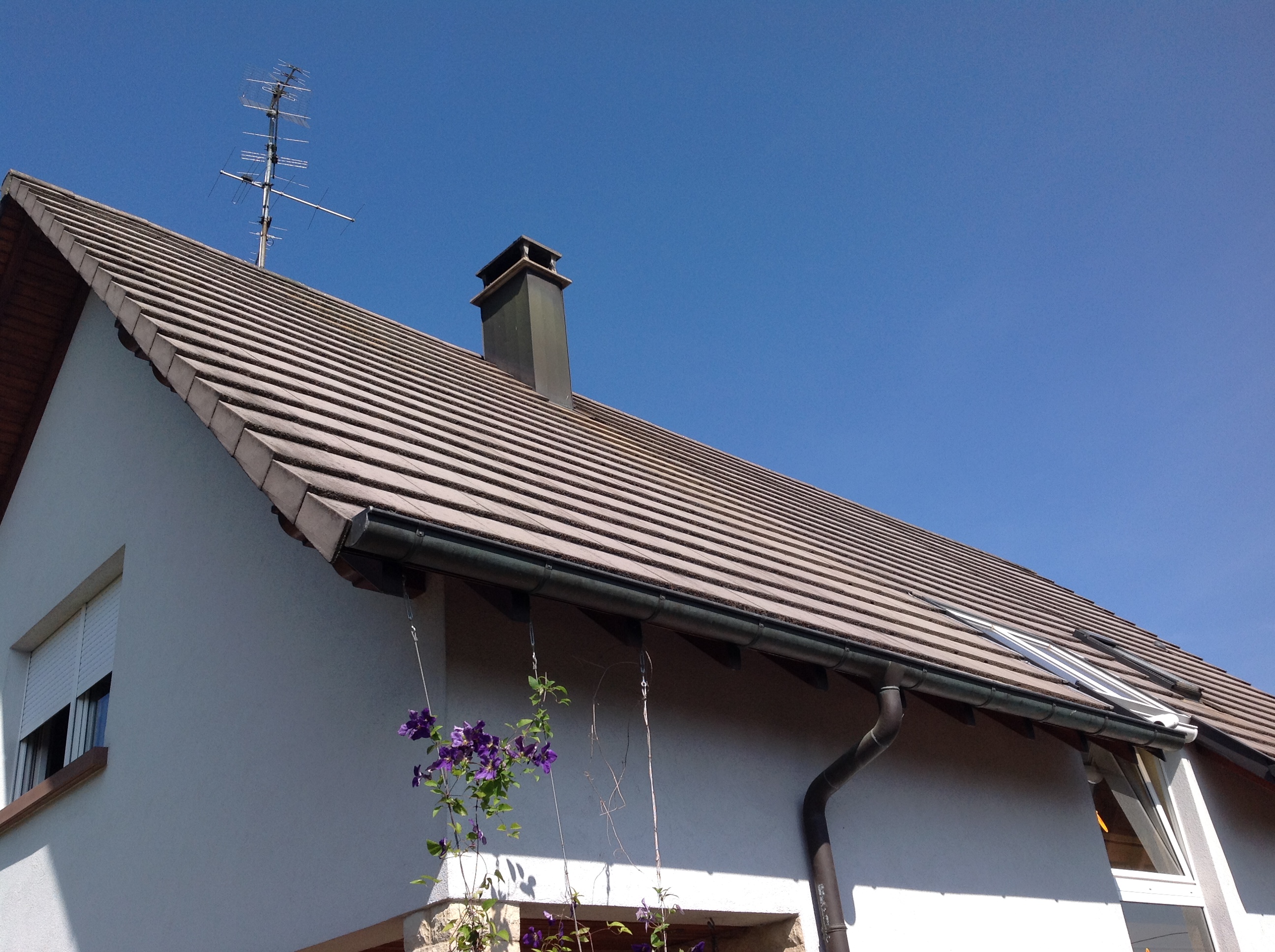 Le client a profité de cette modification pour nous faire améliorer les performances thermiques de sa toiture en ajoutant sur chevron de l’isolation en fibre de bois (pose en « Sarking »). Et pour finir cette toiture, nous avons mis en place une nouvelle couverture avec des tuiles en Terre Cuite.