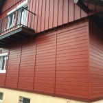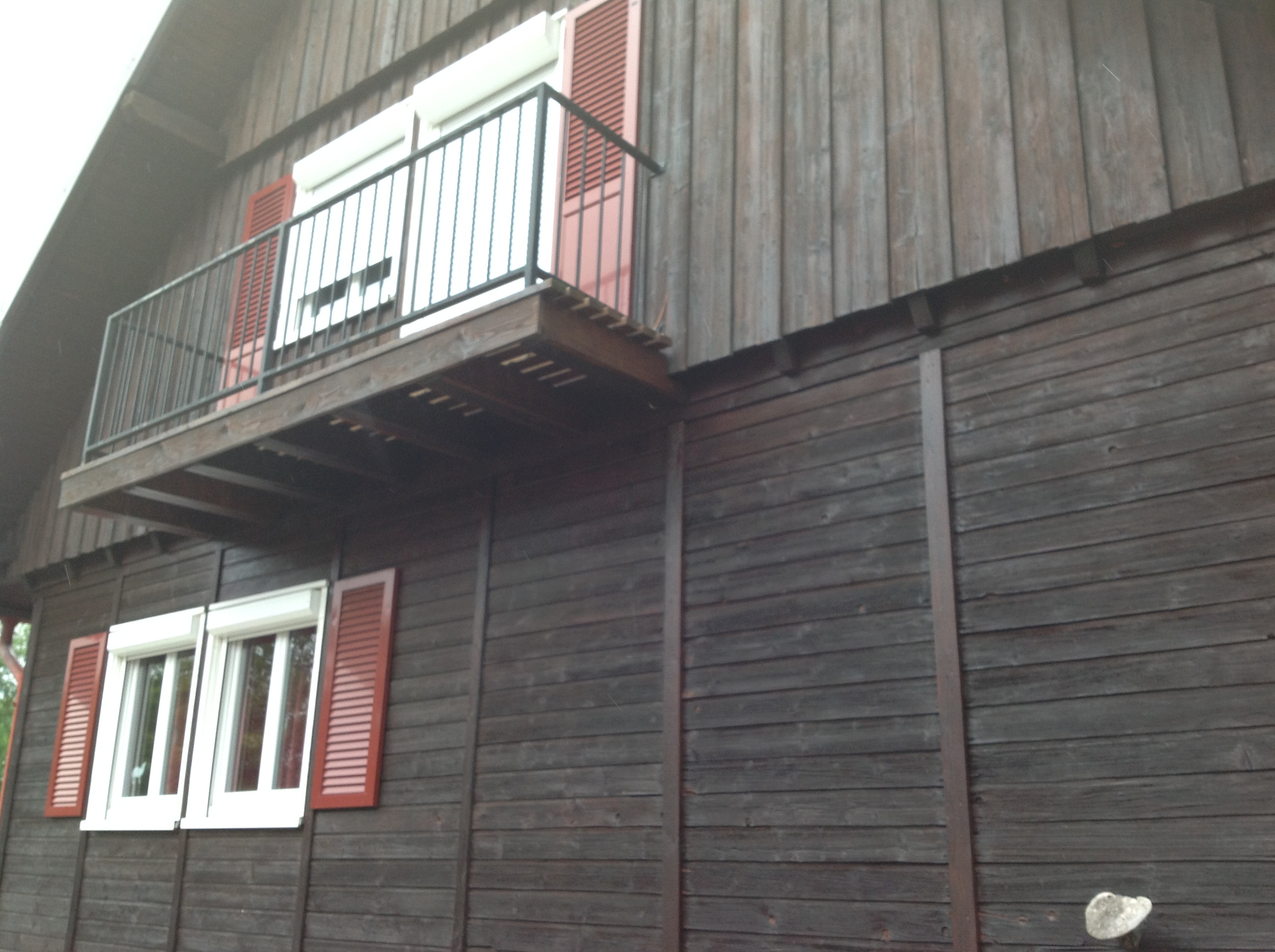 Bardage horizontal et vertical en sapin teinte bordeaux.