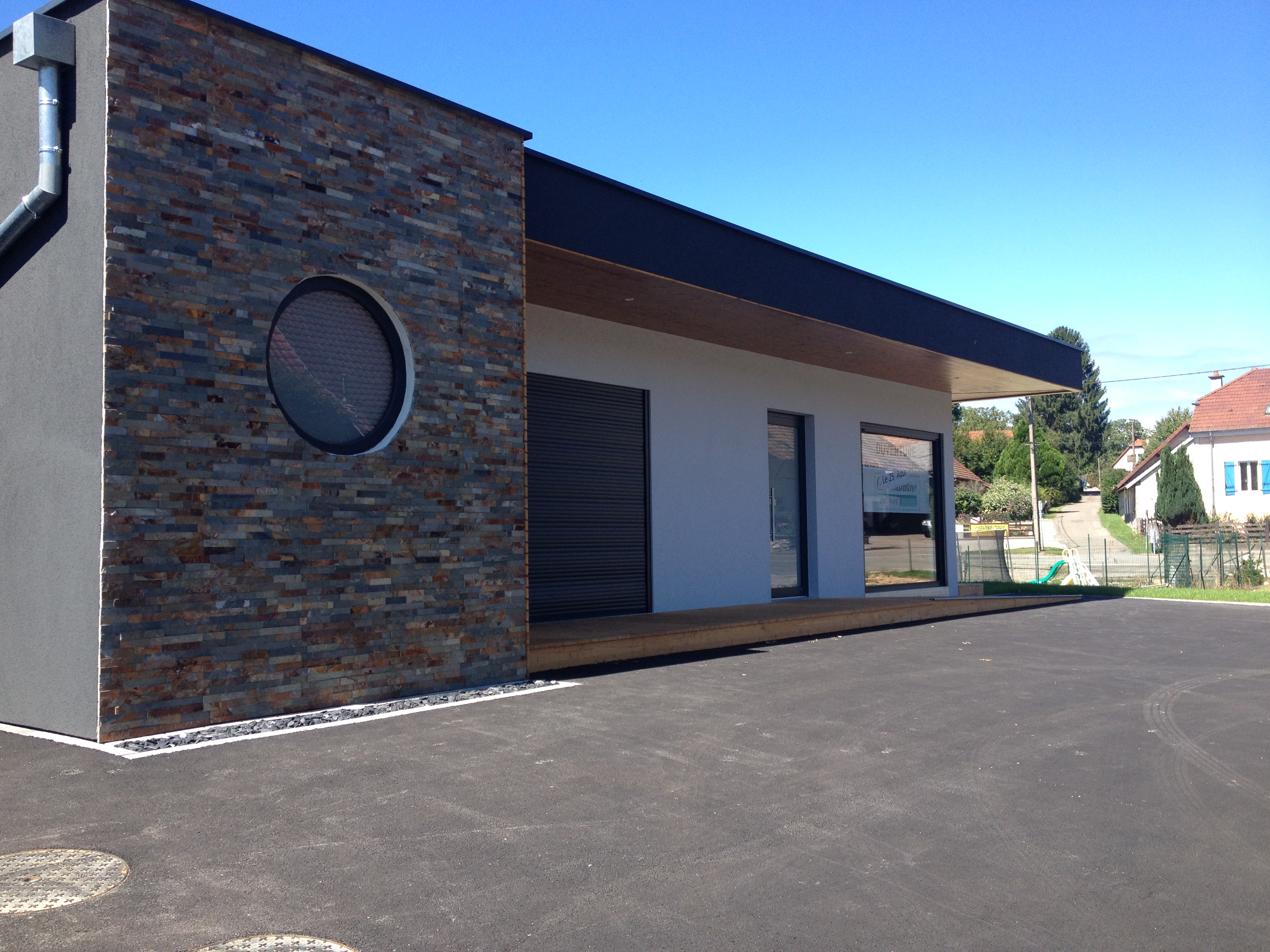 Voici un projet de construction d’un salon de coiffure ossature bois en maîtrise d’oeuvre situé à Réchésy dans le Territoire de Belfort (90).