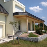 Habillage des acrotères par un bardage en fibre ciment RAL choisi par les clients.